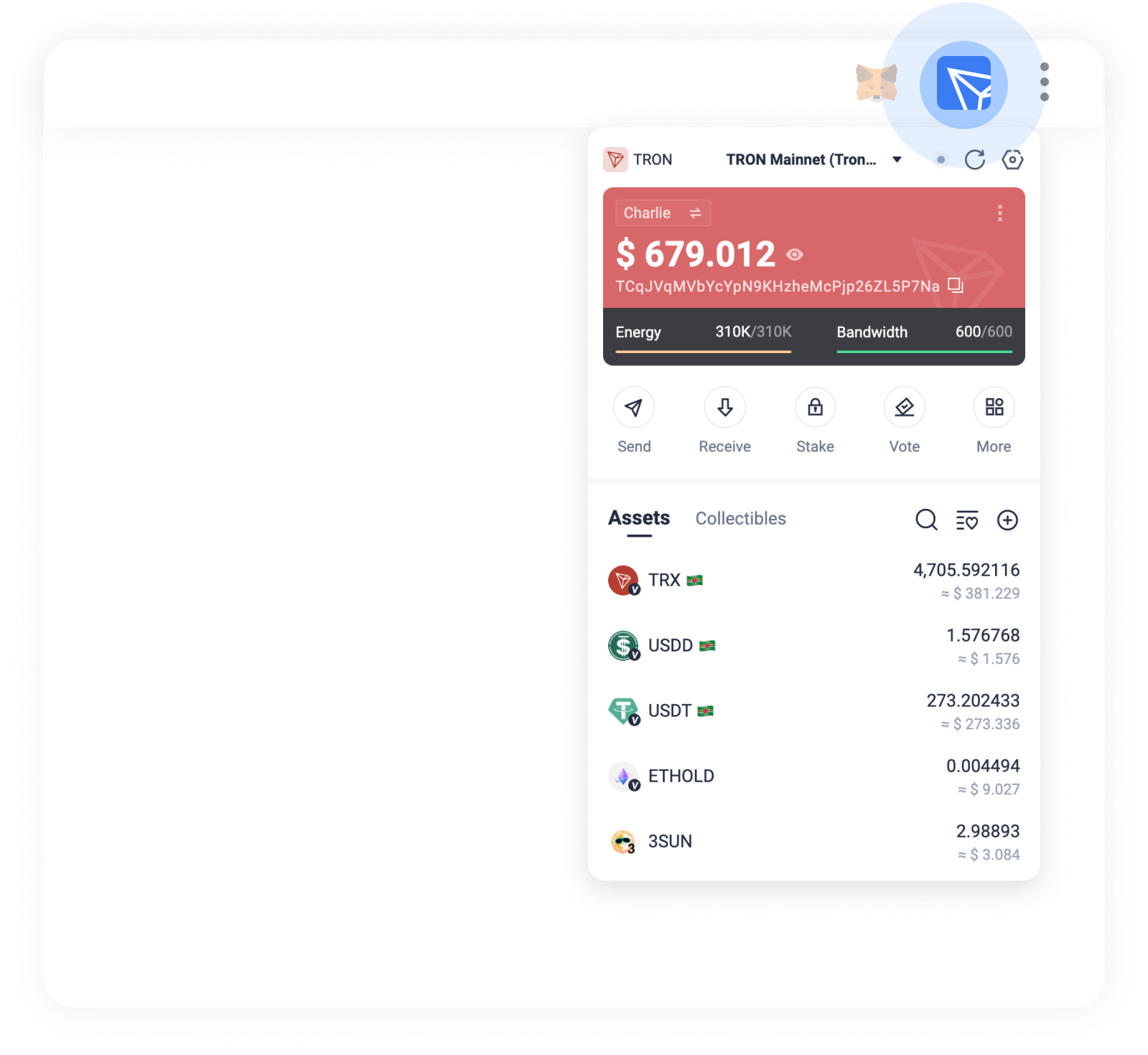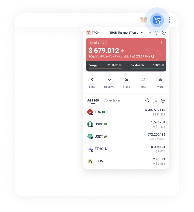 Switch and manage with ease: TronLink is available in the forms of mobile app and browser extension, catering to your needs in different use cases. Come and enjoy TRON DApps whenever and wherever you want!